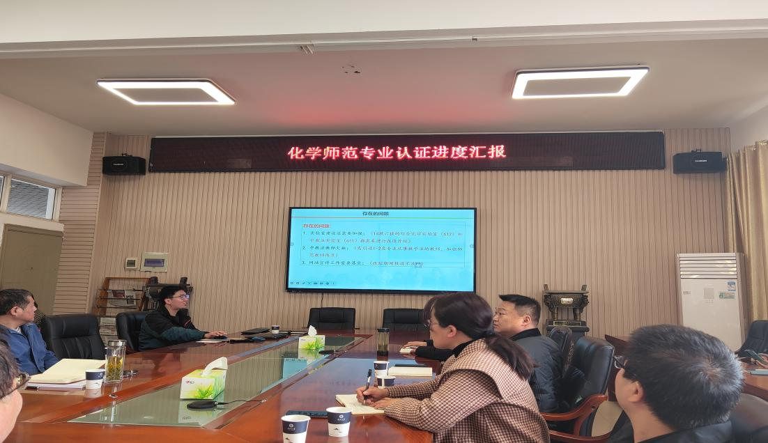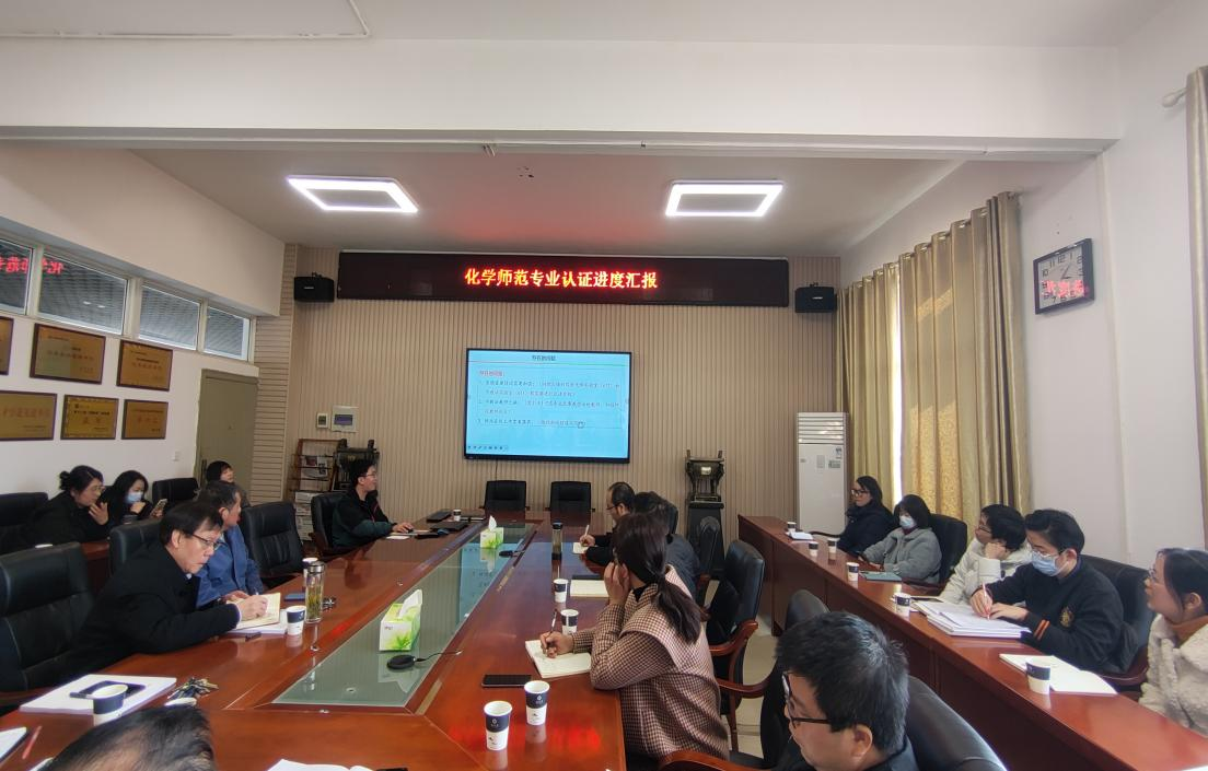 为推动学校专业建设,提升人才培养质量,确保化学师范专业认证工作有序推进,2023年2月27日下午,yl23411永利(集团)有限公司官网于14教西303会议室召开化学师范专业认证工作进展汇报。会议由化学系主任舒文明主持,颜学敏院长、吴爱斌副院长以及部分专任教师参加了此次会议。