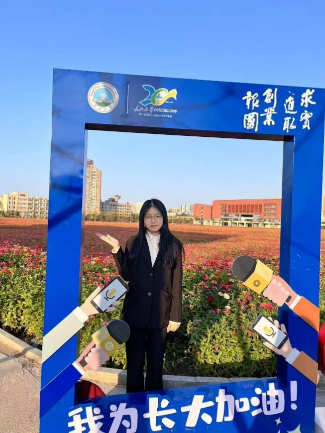党的光辉照亮了她前行的道路。2024年11月她光荣地加入了中国共产党,在面对党旗宣誓的那一刻,她坚定自己要为社会主义事业添砖加瓦。她积极参加学生工作,曾担任学院教学办教师助理,协助老师完成课程、考务等事项的安排。她现身于各项志愿活动,疫情期间她积极投身学校以及家乡的疫情防控志愿活动,获得家乡共青团委员会的表彰。她曾参与学校组织的爱心献血、关爱自闭症儿童、长大学子返母校宣传活动、烈士陵园缅怀先烈活动等等。大二期间,她加入学校“益启团队”志愿组织,成为统筹策划组的一名固定成员,参与策划的“诗文涵义”志愿活动获长江大学青年公益项目唯一一个一等奖。她认为,作为一名生在红旗下,长在春风里的青年,应当始终坚持冲锋在前,将小我青春融入中华民族伟大复兴的建设当中,献萤火微光筑万丈光芒。