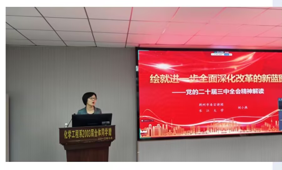 线下培训中,荆州市宣讲团成员刘小燕老师以“绘就进一步全面深化改革新征程”为主题开授第一课,她全面回顾了党的历届三中全会情况,对二十届三中全会关于改革的学理做了深入的阐释,她指出全面深化改革是时代使命,新征程上要以破釜沉舟之决心打破束缚,从经济、社会治理、科技、文化等多领域精心谋划、大胆实践。经济上完善市场机制,激发主体活力;社会治理借助科技提升效能;文化领域鼓励创新,提升国家软实力。严瑾老师讲述了“中国共产党百年奋斗的历史经验”,中国共产党的法宝,王陈老师围绕“坚定理想信念,补足精神之钙”强调党员要坚定理想不懈奋斗的实践精神,将党的宗旨和精神内化于心,外化于行。组织员王长建老师为学员们讲授培训第四课,他以“人工智能进步为化工领域带来什么革命性影响”这一问题展开授课,以第四次工业革命人工智能的视角,告诉学员们科技变革对产效率、生产质量、研发创新、安全管理的影响和挑战,勉励学员们积极应对,不断提升自身理论素养和实践能力。