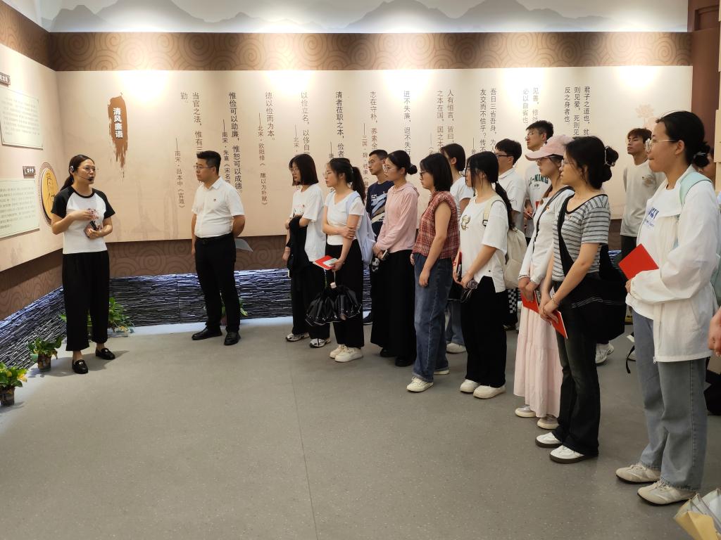 在庄严肃穆的廉政教育基地,师生们在讲解员的引导下,依次参观了"廉吏镜鉴""光辉历程""正风肃纪""警钟长鸣""砥砺前行"五大主题展区。展馆巧妙融合历史传承与现代科技,通过实物展示、场景复原、多媒体互动等形式,生动展现了从古代清官廉吏的嘉言懿行到中国共产党反腐倡廉的历史脉络,从正风肃纪的制度建设到违纪违法的警示案例,立体化呈现了“以廉为美、以贪为耻”的价值导向,师生党员在展品前驻足交流,通过沉浸式体验将廉洁自律的精神内核深植于心。