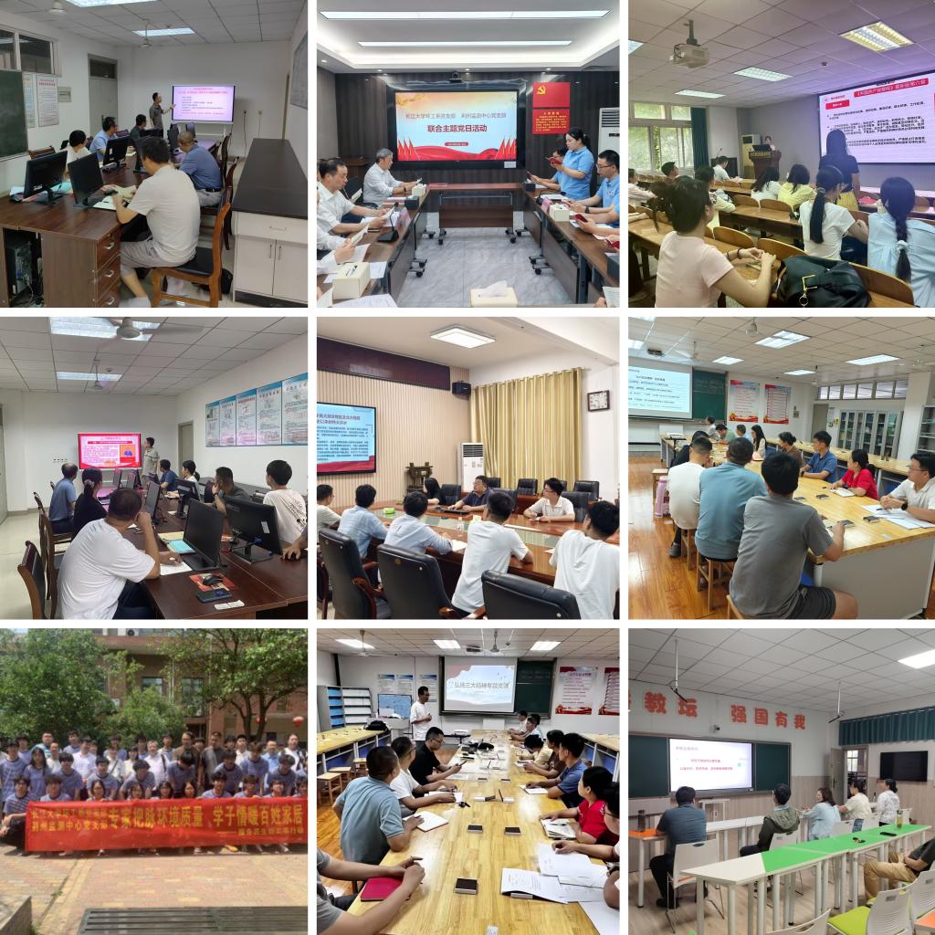 6月10日至20日,各支部相继开展"纵深推进深入贯彻中央八项规定精神学习教育"主题党日活动。活动中,全体党员庄严重温入党誓词,主动交纳党费,集体学习了《中国共产党章程》第七章内容。各党支部书记围绕"弘扬三大精神"主题讲授专题党课,深入阐释了大别山精神、抗洪精神、抗疫精神的时代内涵和实践要求。其中环工系党支部还和荆州监测中心党支部开展联合主题党日活动,并带领环工24级学生共同开展“美丽中国 碳索青春”科技志愿服务活动。