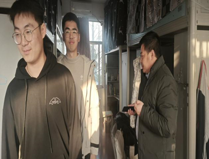 12月21日下午,由党委副书记杨会军带队,组织全院辅导员、班主任和学生干部走访了学生宿舍,全覆盖、无遗漏做好消防排查与整改工作。班主任老师带领学生干部逐一检查了本班学生寝室,重点对安全用电和禁用明火等方面进行了排查。走访中,老师们还就健康卫生、复习备考、防寒保暖等问题对学生进行了指导和提醒。