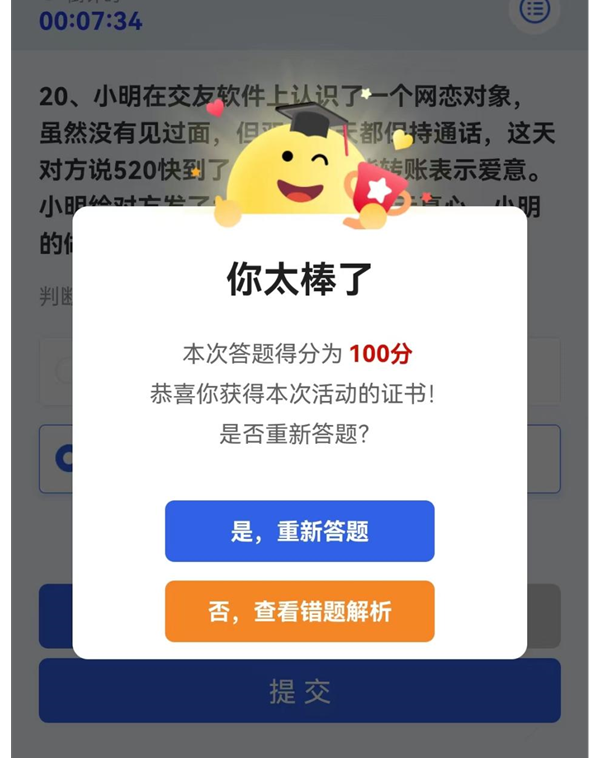 同时,学院组织学生在中国大学生在线官网或微信公众号参与“守护青春 网络有你”全国大学生网络安全知识答题活动,以趣味竞赛的方式巩固所学知识。此次活动收集到众多反馈信息。师生们纷纷表示,线上课程内容充实,实用性高,答题活动形式新颖,激发了学习积极性。通过这些活动,大家不仅提升了网络安全知识水平,还增强了网络安全防范意识和能力。