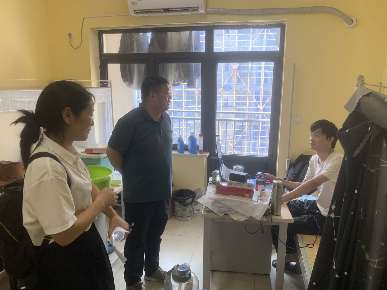每到一间宿舍,学院老师们与毕业生亲切交谈,详细了解毕业去向、就业情况及未来规划。对于已就业同学,勉励他们在工作岗位上踏实肯干,将理论知识运用到实践中去;鼓励继续深造的同学,希望他们在学术道路上保持探索精神,勇攀学术高峰;对暂未落实去向的学生,结合当前的就业形势,给予职业规划指导,并承诺“就业帮扶通道永不关闭”。同时,老师们反复强调证件保管、行李托运规范,提醒学生警惕租房诈骗和求职陷阱。辅导员同步检查宿舍水电安全,叮嘱离校前办理退宿手续,保障“文明、安全、有序”离校。
