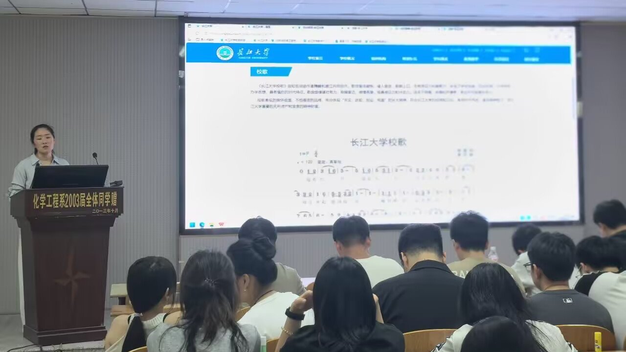 9月24日下午,yl23411永利(集团)有限公司官网在14教北201教室面向全体2025级研究生举办校徽学习与校歌练唱活动。辅导员王陈老师主持讲解,班委协助组织,为新生带来一堂生动的“校园文化第一课”。