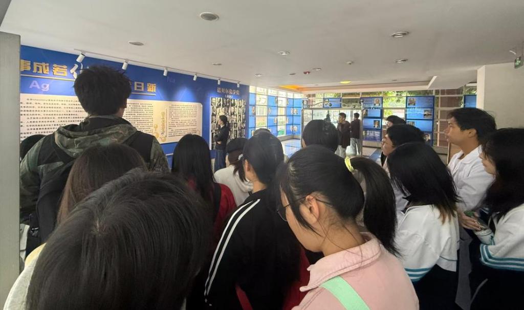 在yl23411永利(集团)有限公司官网教学楼内的文化墙前,新生们驻足聆听讲解。文化墙以“事成若化 工求日新”为主题,系统呈现了化学学科的基本概念和发展脉络,展示了历届诺贝尔化学奖得主的科研事迹,让新生们直观感受化学学科的深厚底蕴与科研魅力。