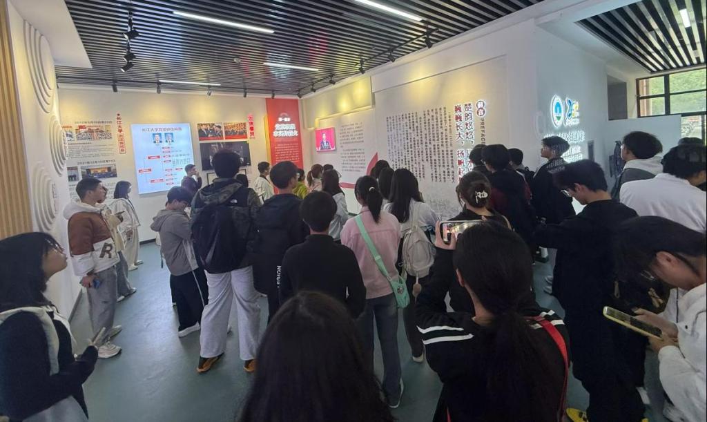 随后,同学们进入校史馆观看长江大学宣传片。视频生动呈现了学校近年来在学科建设、科研成果、文化繁荣与人才培养等方面的蓬勃发展。讲解员细致解读校史细节,辅导员徐茵全程陪同答疑,现场学习氛围浓厚。参观过程中,新生们或驻足凝视、或低声交流,在一个个历史片段与荣誉瞬间中,对学校的认同感与自豪感不断升腾。