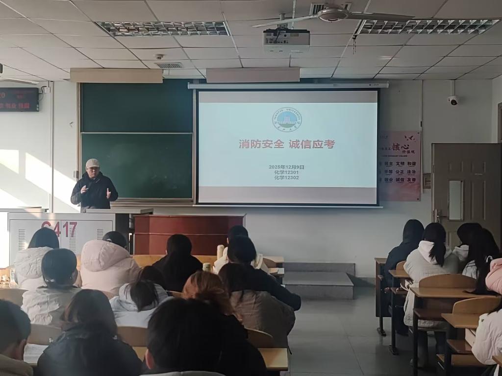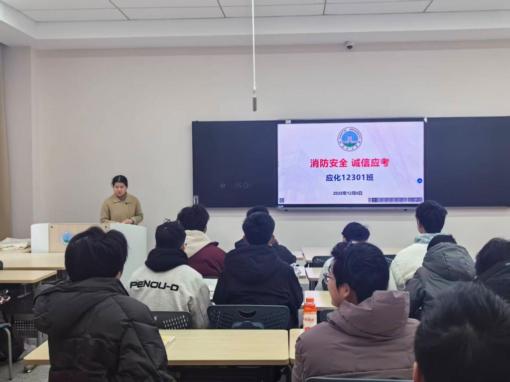 在学院的统筹部署下,各本科班班主任、研究生辅导员积极牵头组织,班会内容丰富务实、重点突出。消防安全环节,班主任结合化工学科特性与校园、居家场景,通过播放火灾事故警示片、拆解实验室违规操作引发火情的典型案例,详细讲解了火灾预防要点、初期火灾扑救方法、灭火器正确使用步骤以及火场逃生自救技巧,特别强调了实验室易燃易爆物品存放规范、宿舍大功率电器禁用等关键要求,引导学生时刻绷紧消防安全弦。学院各年级辅导员走访学生寝室,排查安全隐患,了解学生复习进度。