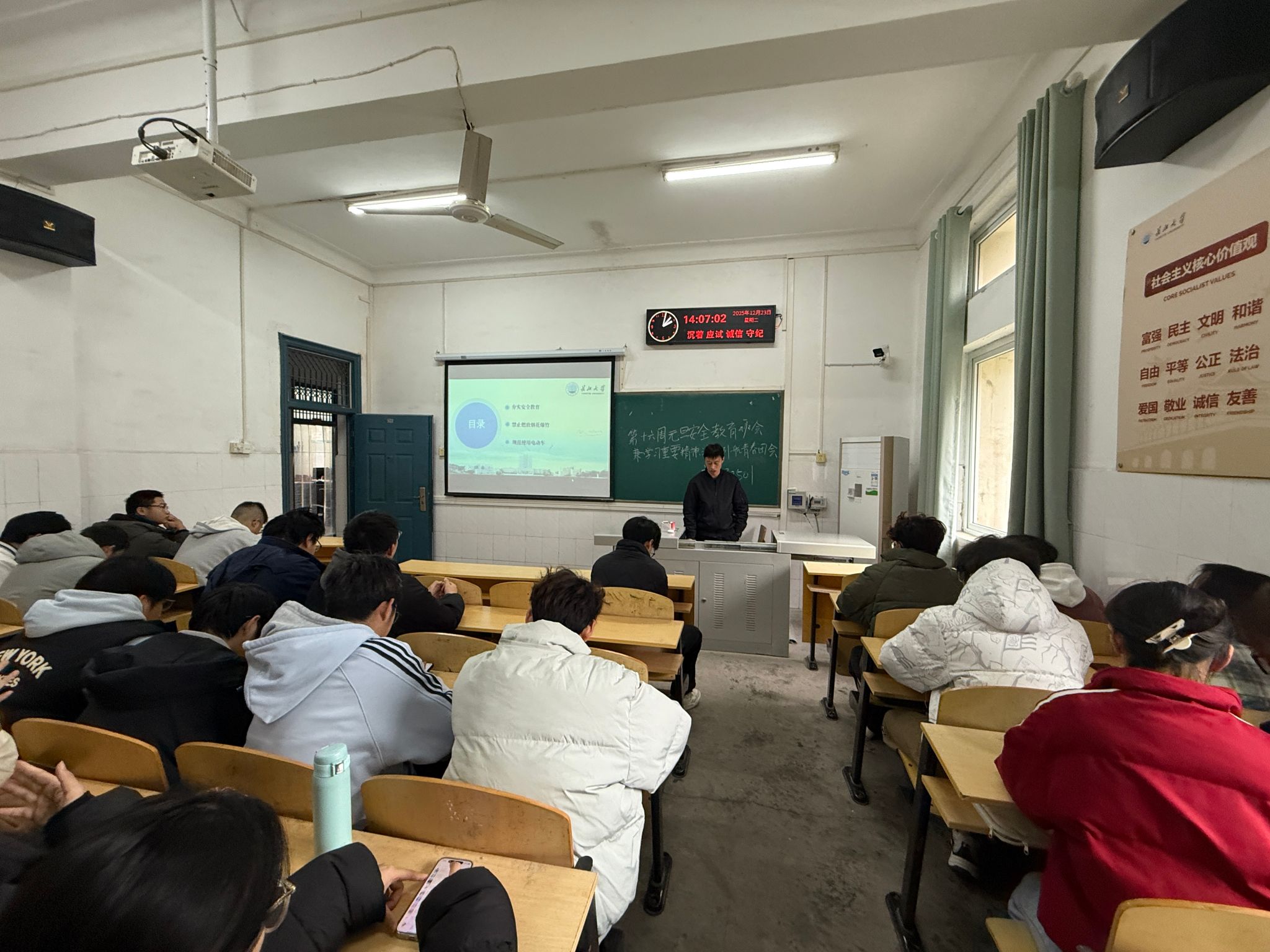 随着元旦佳节临近,为切实强化研究生安全防范意识,保障全体学子度过一个安全、欢乐、祥和的假期,12月24日起,yl23411永利(集团)有限公司官网以班级为单位,组织本科生、研究生各班开展系列元旦前后安全教育主题班会。