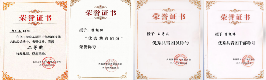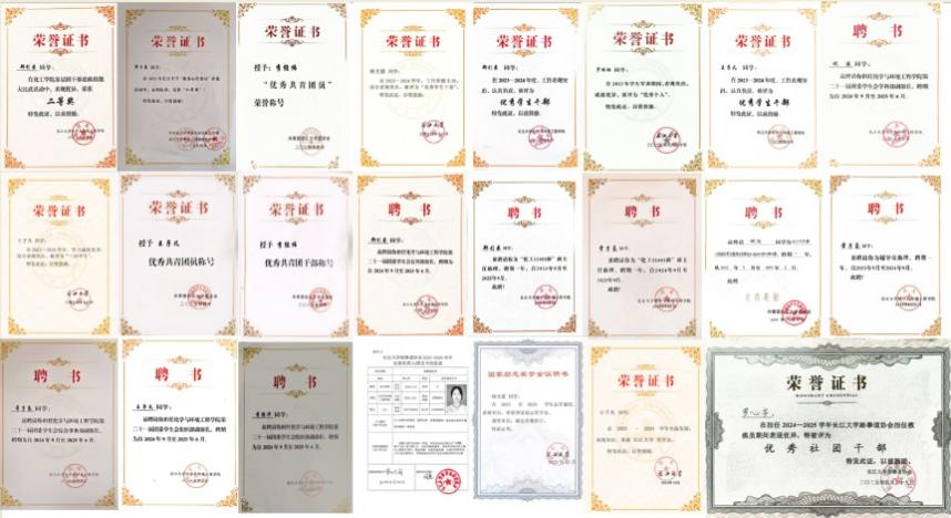 班级中有5人曾担任学生会干部,1人凭借对跆拳道的热爱与专业素养,担任长江大学跆拳道协会社团负责人。截至目前,班级共斩获21项荣誉证书,。其中,2名同学荣获国家励志奖学金,1名同学荣获校奖学金,这些学业类荣誉是对他们勤奋学习的肯定。