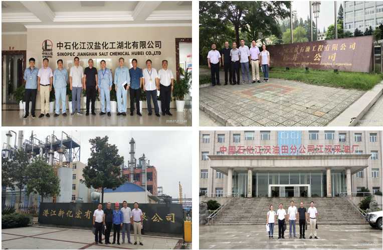 颜院长一行先后来到中石化江汉盐化工湖北有限公司、中石化江汉油田分公司江汉采油厂、潜江新亿宏有机化工有限公司、中石化江汉石油管理局有限公司水电分公司、中石化江汉石油工程有限公司钻井一公司、江汉油田分公司采油气工程技术服务中心,受到各企业经理的热情接待,双方进行了深入交流。