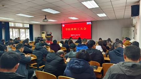 “明目标、谋发展”。2月27日,yl23411永利(集团)有限公司官网2025年春季学期第一次全体教职工大会在14教北201召开。学院全体教职工参加会议,党委书记王丽主持会议。