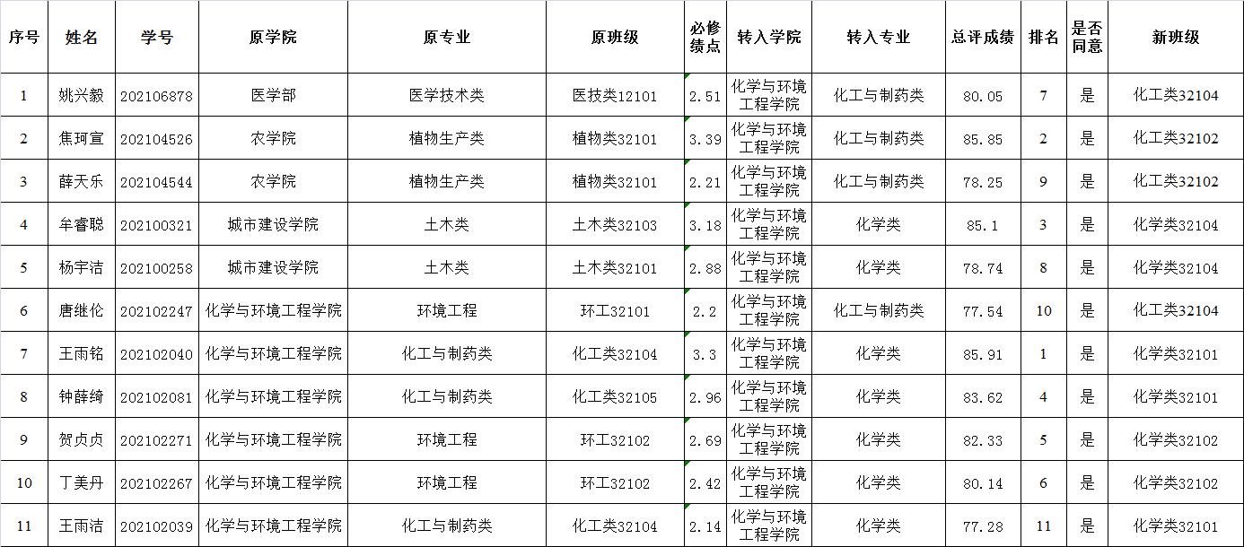 yl23411永利(集团)有限公司官网2021级拟转入学生名单及成绩