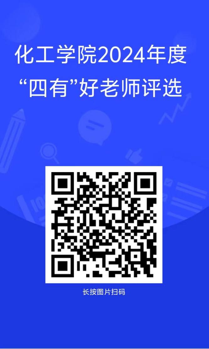 关于评选化工学院第三届“四有”好老师的通知 各位老师、各位同学! 2024年是习近平总书记激励广大教师争做有理想信念、有道德情操、有扎实学识、有仁爱之心“四有”好老师的第十年,为选树和表彰坚守教育初心、坚持立德树人,认真落实习近平总书记关于教育的重要论述精神,以“四有”好老师为生涯信仰和追求的先进典型,经学院党委研究决定,在全院开展第三届“四有”好老师的评选活动。具体通知如下。 1.候选人 经学院各系、办公室、实验中心提名推荐,评审小组初审,王齐等9名同志被推荐为我院第三届“四有”好老师候选人(具体事迹附后)。 2.投票人 全院教师、学院全体在校学生 3.投票时间 9月6日—9月8日 4.投票原则 客观公正公平的投出符合以下要求的人选: 有理想信念:要忠诚于人民的教育事业,有远大理想、坚定崇高信念,为社会、为民族培养出栋梁之材,是社会主义核心价值观的带头践行者和传播者。 有道德情操:把敬业爱生作为教育工作的根本准则,以培育和践行社会主义核心价值观为己任,以立德树人为目标。 有扎实学识:具备精深的学科知识、灵活的教育教学知识以及广博的文化知识,树立终身学习理念,不断汲取并灵活运用新知识。 有仁爱之心:关爱学生、爱岗敬业、严慈相济,在教育过程中对学生“晓之以理”“动之以情”,有尊重学生、理解学生、宽容学生的品质。 5.投票规则 每位老师、同学仅有一次投票权限,每票限投4名。因后台有投票记录,请每位老师和同学们,微信扫码投出您心中的“四有”好老师。 感谢老师和同学们的大力支持!