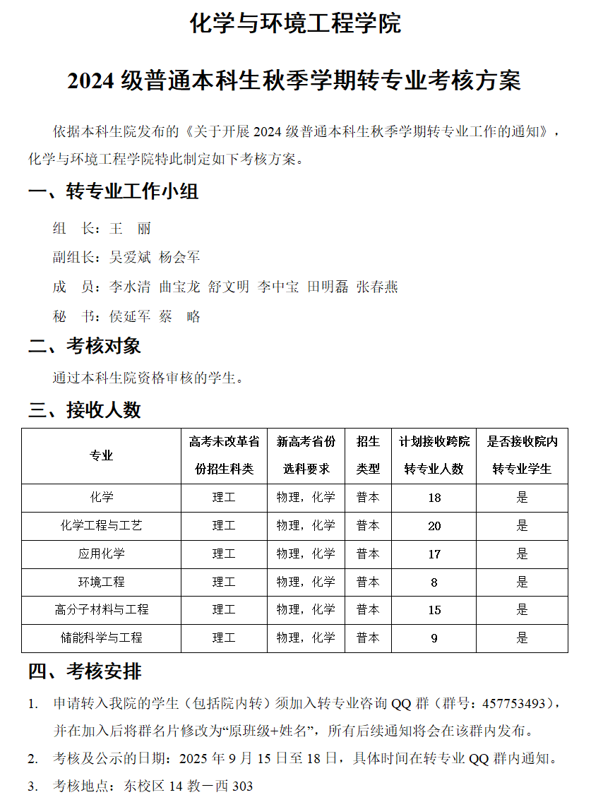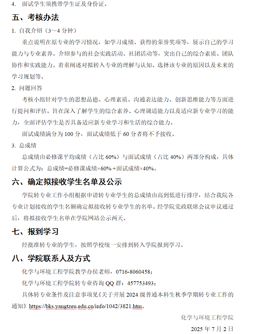 yl23411永利(集团)有限公司官网2024级普通本科生秋季学期转专业考核方案