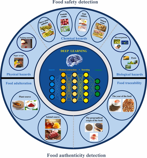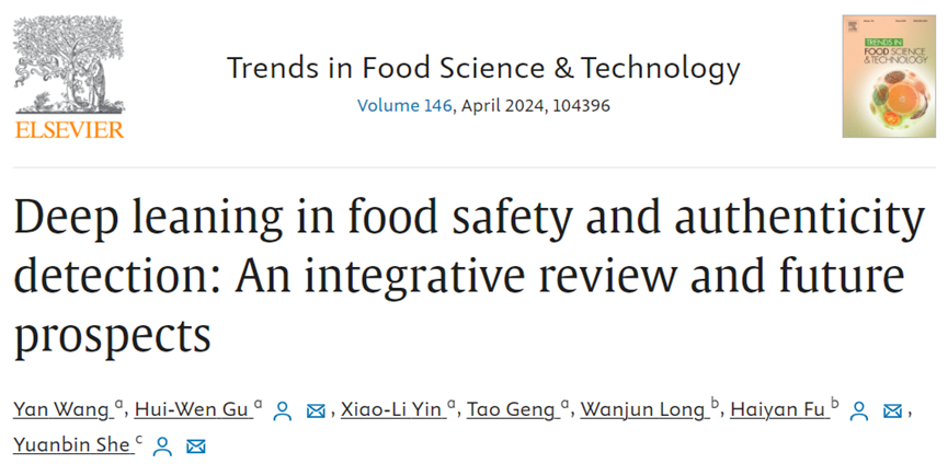 近日,我院谷惠文副教授课题组在国际食品科技领域顶级期刊《Trends in Food Science & Technology》(IF=15.3,中科院一区Top期刊)上发表了题为“Deep leaning in food safety and authenticity detection: An integrative review and future prospects(食品安全与真实性检测中的深度学习:综述与展望)”的综述性论文。我院材料与化工专业2022级硕士研究生王炎同学为论文第一作者,硕士研究生导师谷惠文副教授为论文第一通讯作者,长江大学yl23411永利(集团)有限公司官网为论文第一作者单位及第一通讯作者单位。